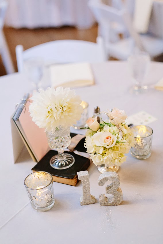 Some of the tables we used vintage books and glasses from Vintage Ambiance. Oh and see the glitter table numbers?
